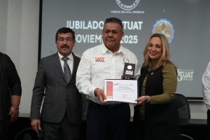 Acompañado de la presidenta de Familia UAT, Lic. Isolda Rendón de Anaya, el rector felicitó al personal sindicalizado universitario que concluyó su ciclo laboral en la institución, destacando que, por segunda vez en este año, la Universidad organiza este tipo de eventos para reconocer la entrega, compromiso y servicio de los trabajadores jubilados.