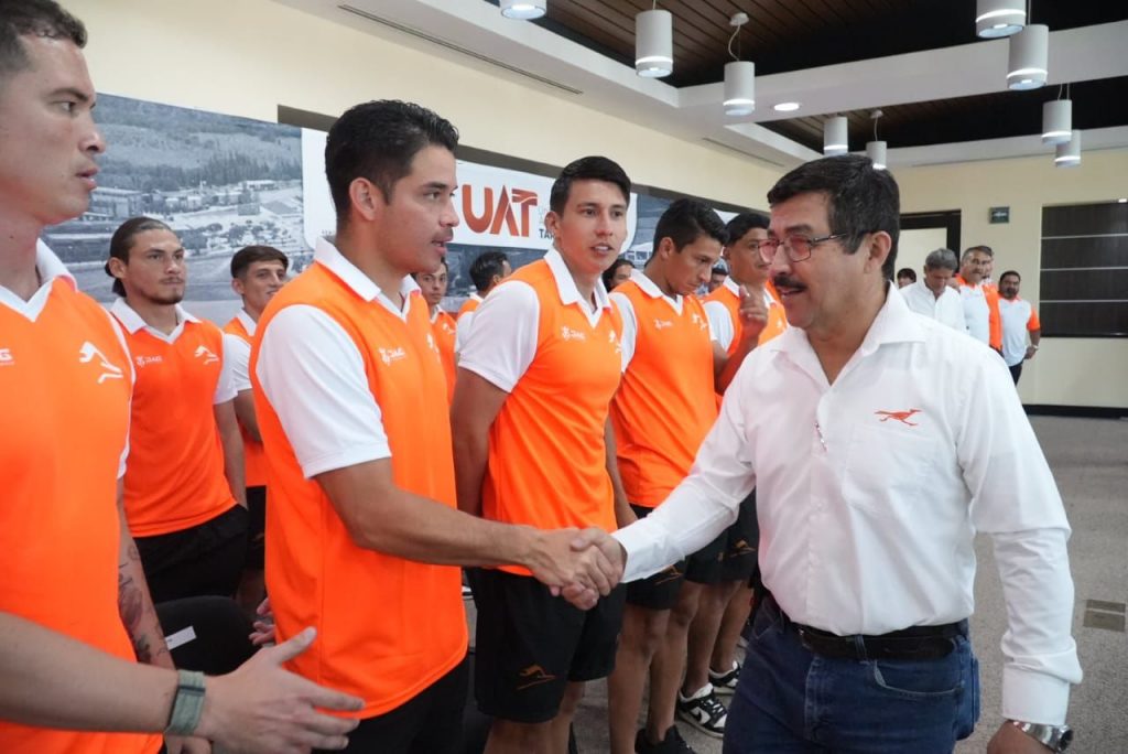 En el evento celebrado en el campus universitario, el rector Dámaso Anaya recibió de manos del capitán del equipo, Daniel Cisneros, la nueva camiseta representativa del conjunto, en un acto simbólico que marcó el inicio de una nueva etapa para el club que representa con orgullo los colores de la UAT.