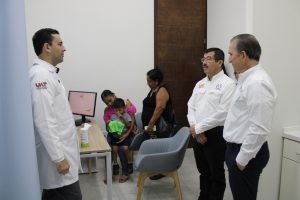 En otra parte, presenció una consulta con el uso de tecnología de ultrasonido en los Consultorios de Alta Especialidad, y conoció la propuesta de una Clínica de Atención Primaria de Salud, destinada a fortalecer la formación y el servicio universitario.